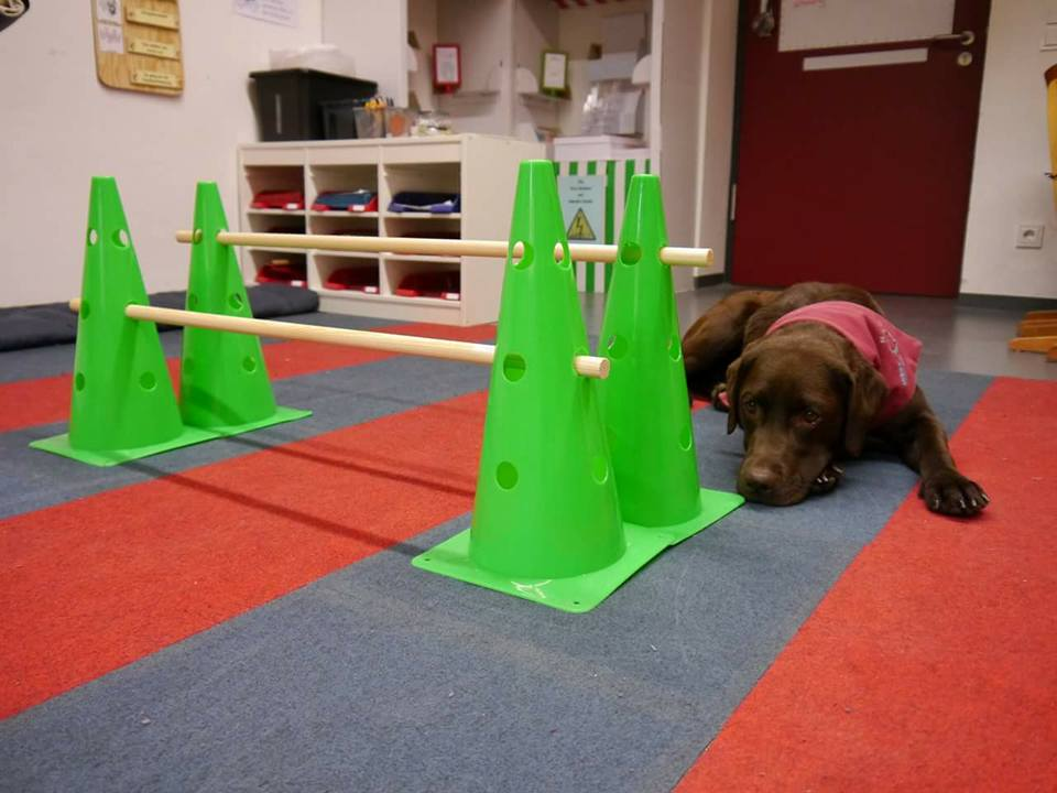 Dann band ich Eywa mit ein: Madame durfte alles vormachen. Über bzw knapp neben den geschwungenen Seilen laufen, über die Hürden springen, unter den Hürden durchkriechen, Slalom laufen, durch den Tunnel, von Target zu Target laufen...