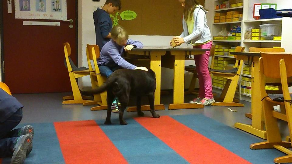 Erst zum Ende der Stunde schnuffelte sie in Richtung der Schüler und näherte sich sehr vorsichtig (aber vielleicht galt das Interesse auch den Pausenbroten in den Ranzen).