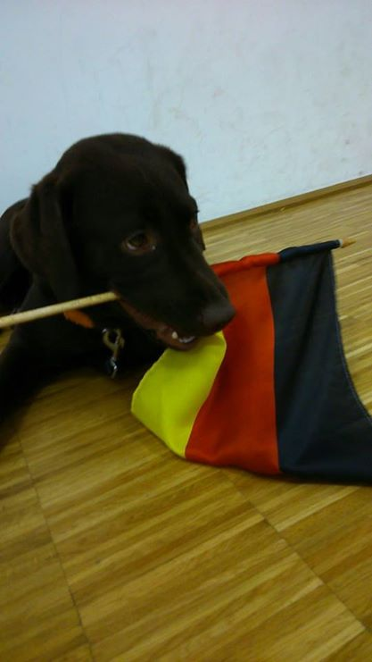 Nicht nur, dass sie inzwischen mach einer ersten kleinen Unsicherheit Aufzug fährt, mir die nötige Menge Schlaf zugesteht, fleißig ihr Spielzeug apportiert, nicht mehr meine Finger beim Futtern angeknabbert, nein, heute hat sie auch die erste Schulluft super und mit Bravour geschnuppert.