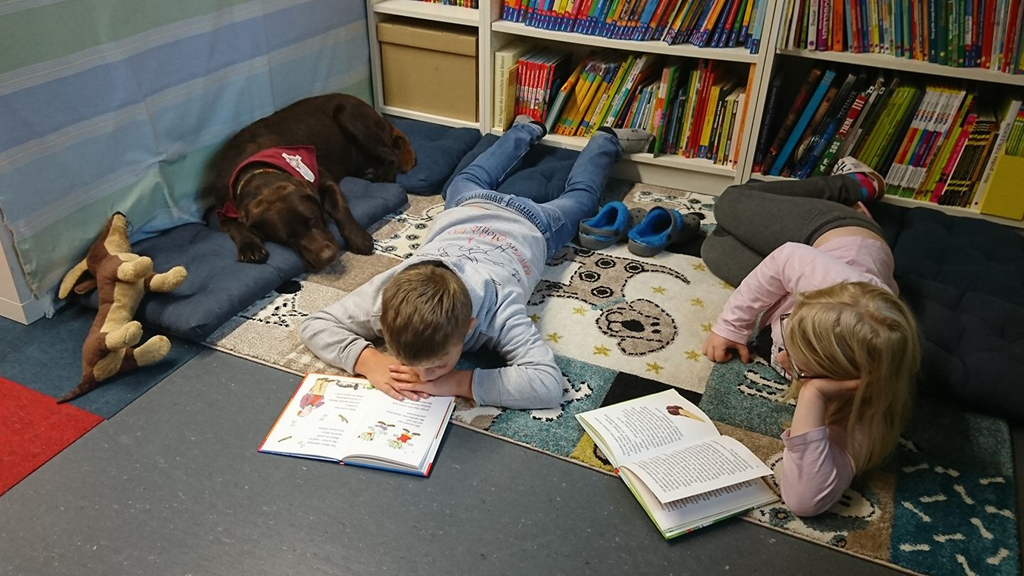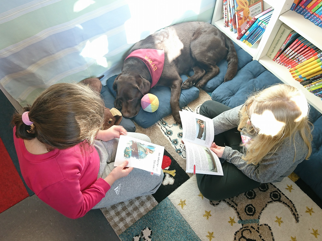 Beide Schülerinnen lasen Eywa nacheinander vor, flüsternd, fast lautlos und strichen ihr dabei immer wieder über das Fell.