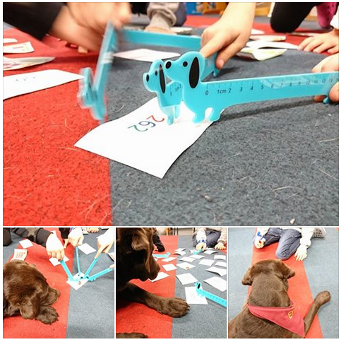 Und weil Nike immer wieder zwischen den einzelnen kleinen Übungen so brav auf das Tafel-Geodreieck aufpasste und dabei völlig ruhig blieb, konnten auch die Kinder alles gut aufnehmen und umsetzen ![]()