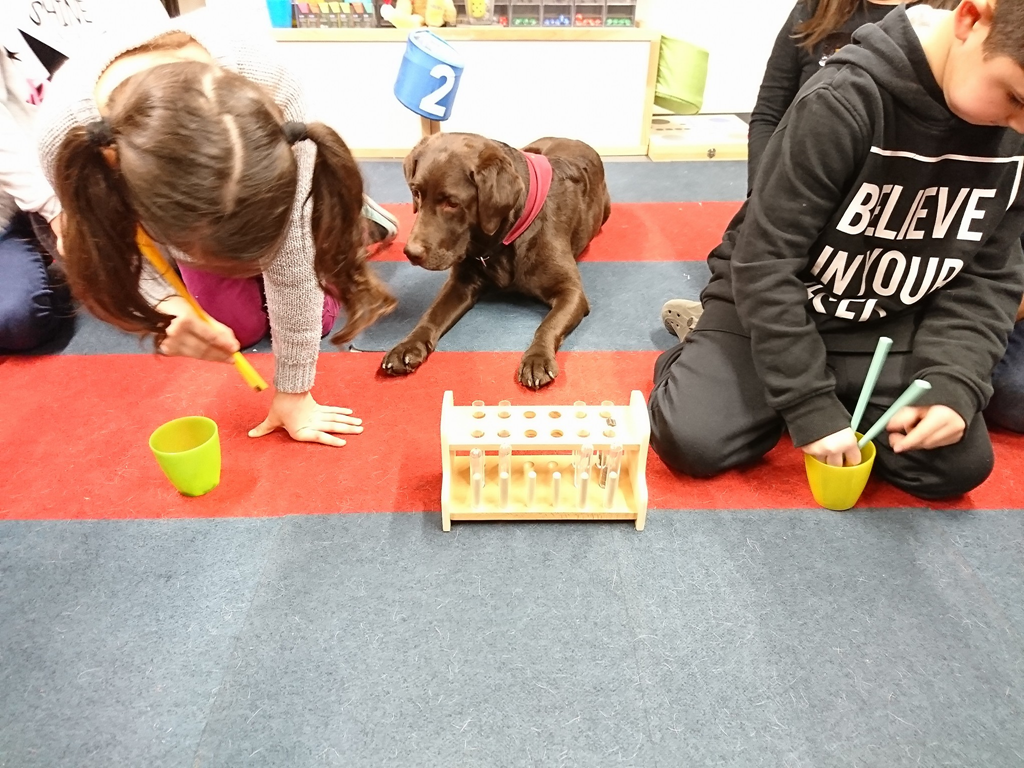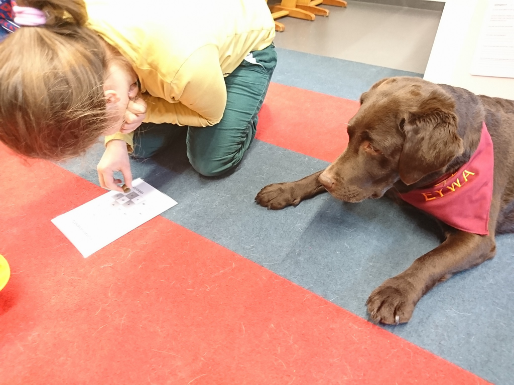 Eywa durfte sich dann auch gleich in zwei Einsätzen beweisen und hat sich vor allem in der Mathestunde der Drittklässler sehr ins Zeug gelegt.