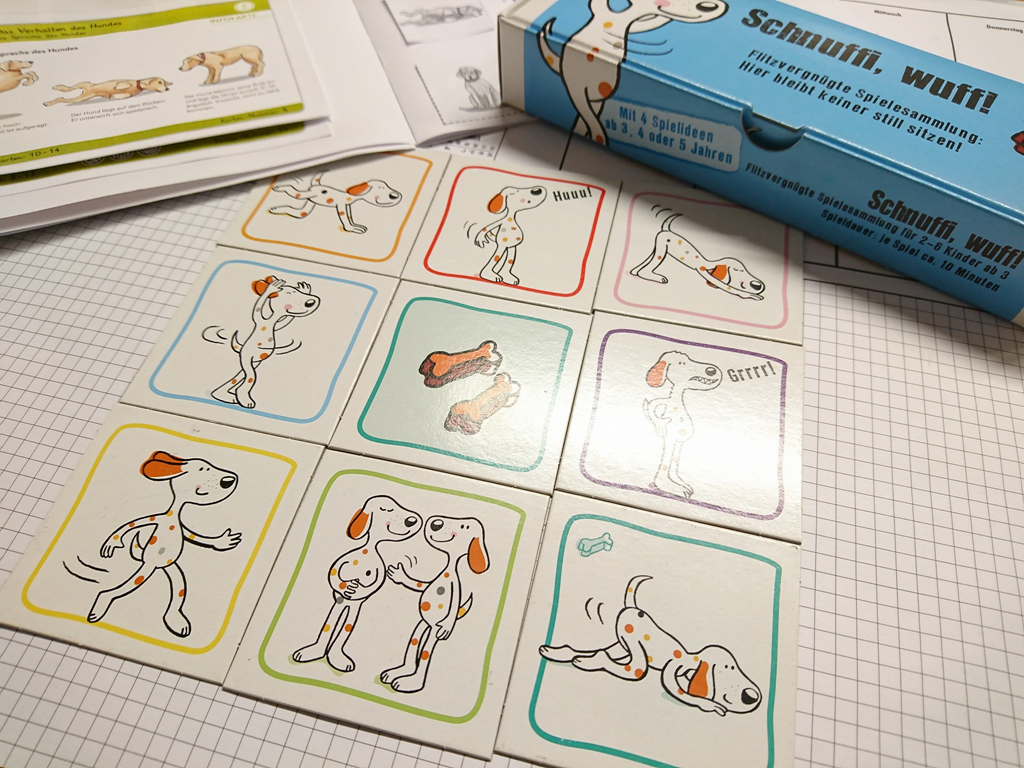 Passend für kürzere Arbeitsaufträge , Wort- und Zahlenkarten, Belohnungskärtchen und natürlich kleine Leckerlis für die beiden Wuffels...