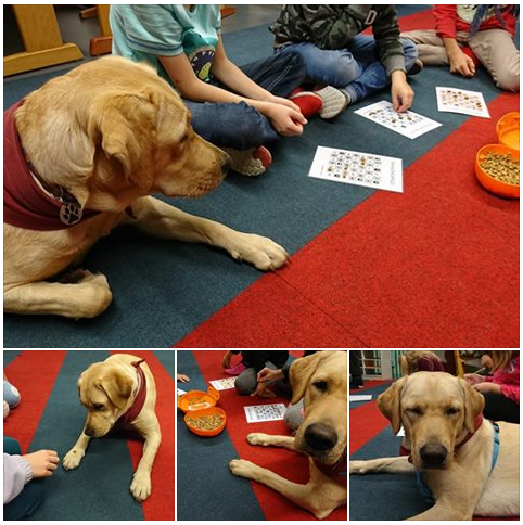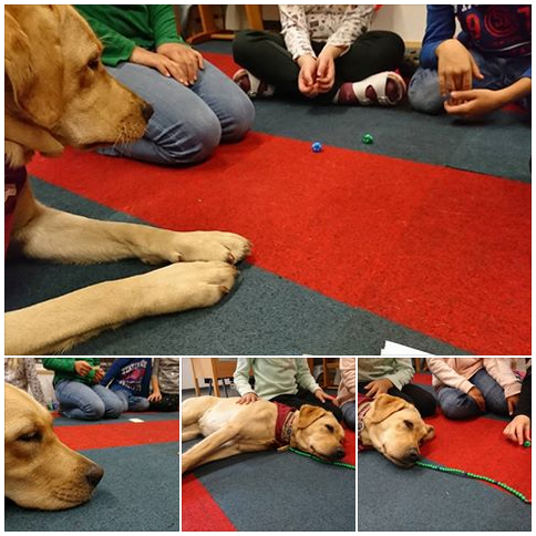 Zwischendurch lief sie die einzelnen Gruppen aber auch ab, stubste evtl einzelne Kinder an, holte sich kurze Streichler ab, hörte sich kleine Passagen der Märchen an...