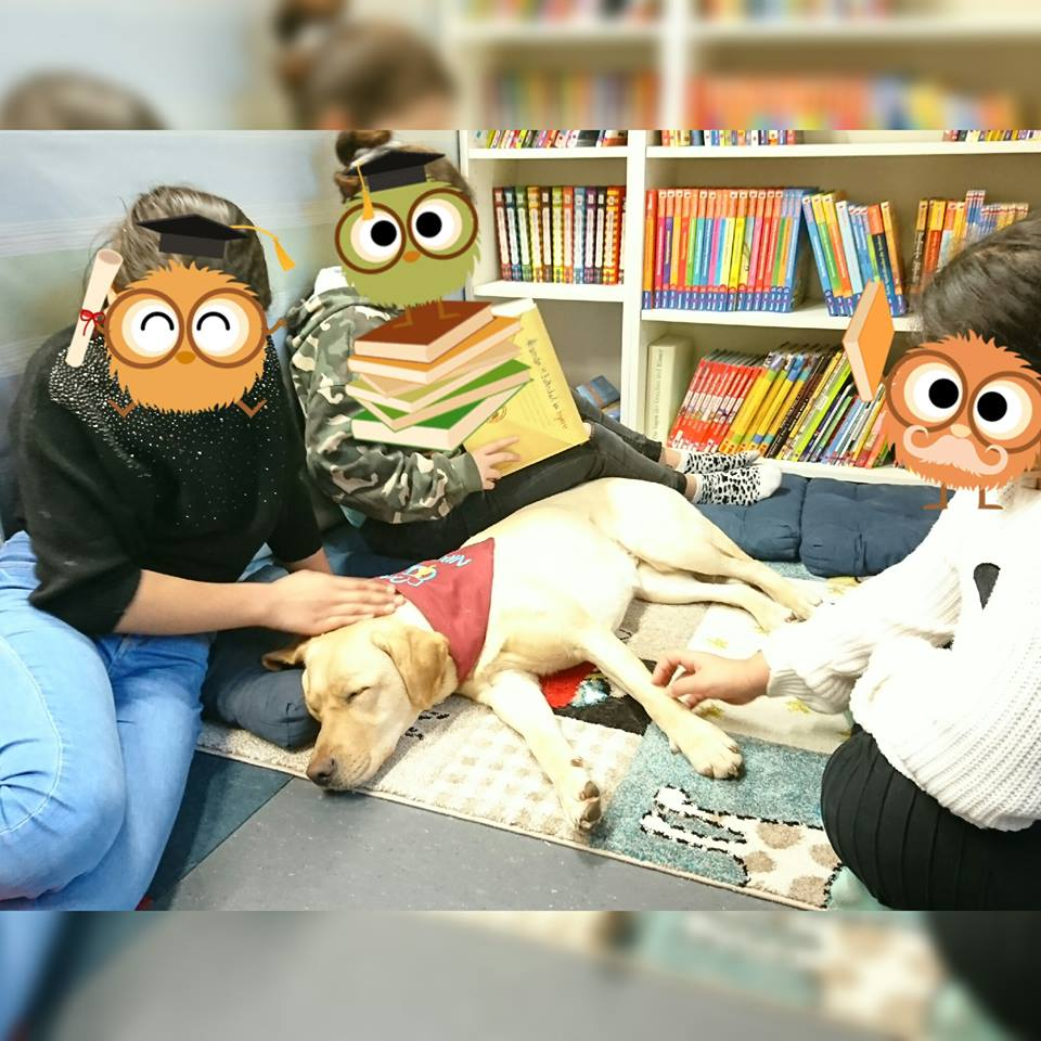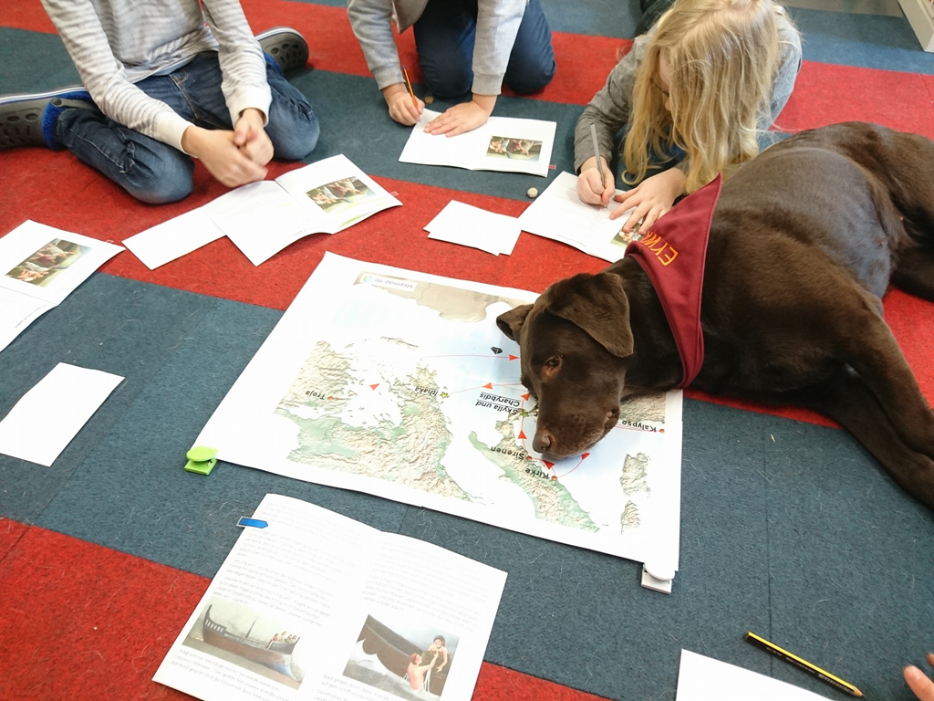 In der darauffolgenden Lesestunde durfte sich Eywa wieder beweisen und leistete den beiden Mädels der Gruppe in der Leseecke Gesellschaft, während diese in ihre Lektüre zur Odyssee vertieft waren.