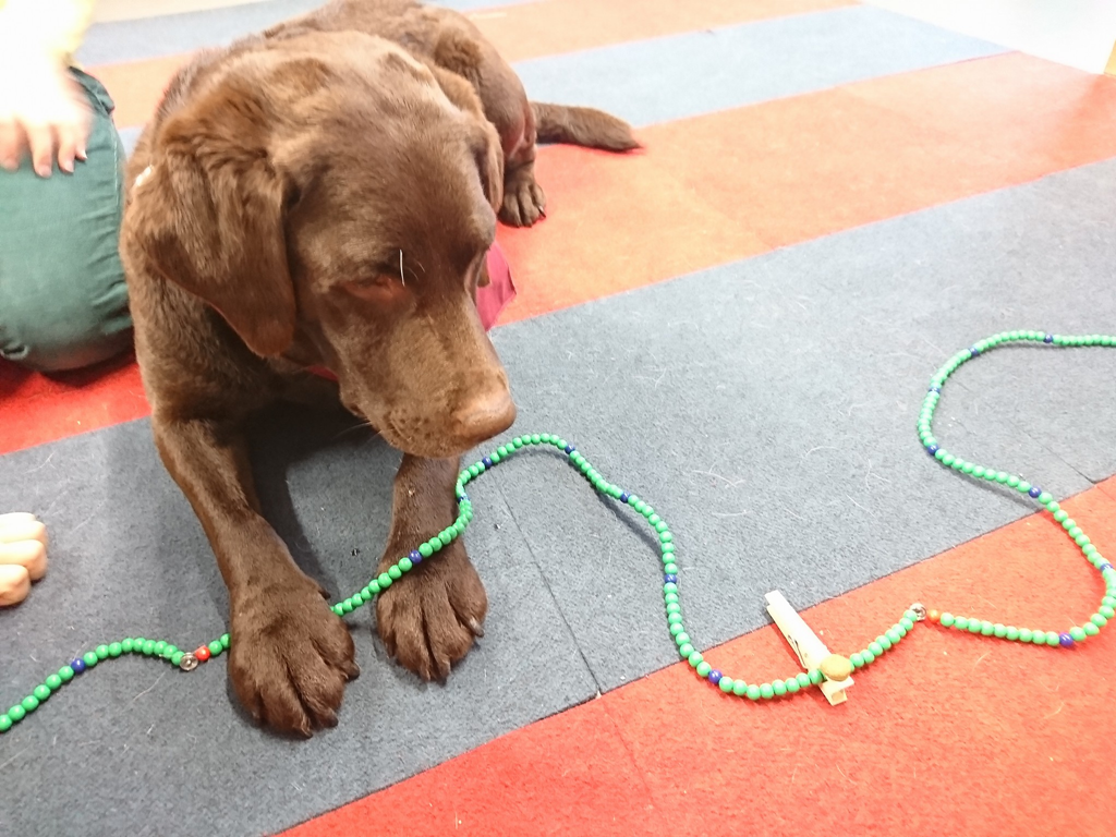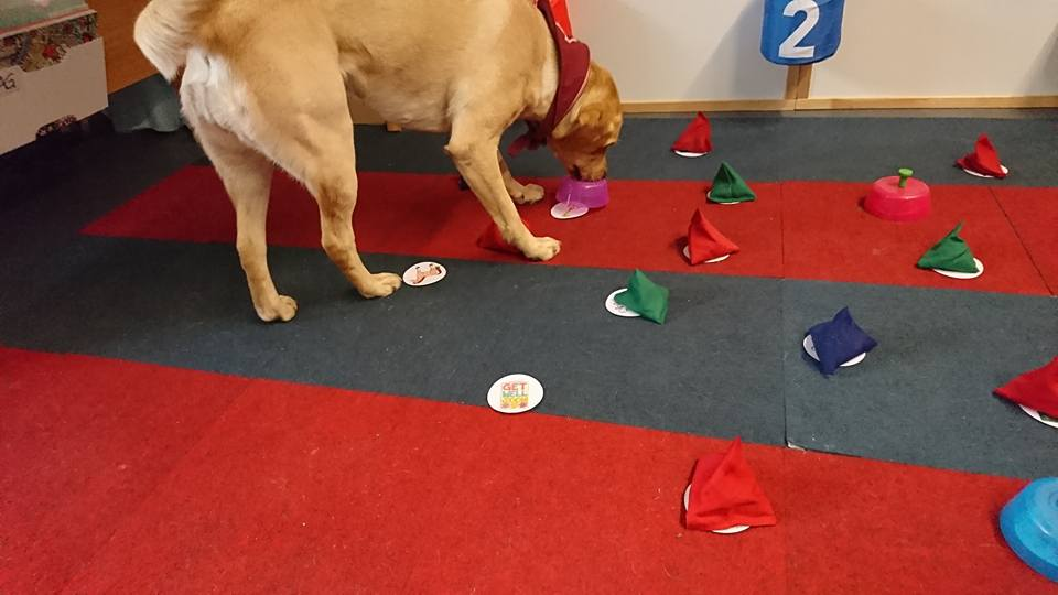 Nun waren ja noch vier Leckerliklammern über und in diesem Fall ordnete Eywa zu: die Reihenfolge der Gruppenkinder stand fest und ich schickte Madame jeweils auf die Suche nach einem Leckerli. Dort wo weggefuttert wurde, war das jeweilige Kind gefragt.