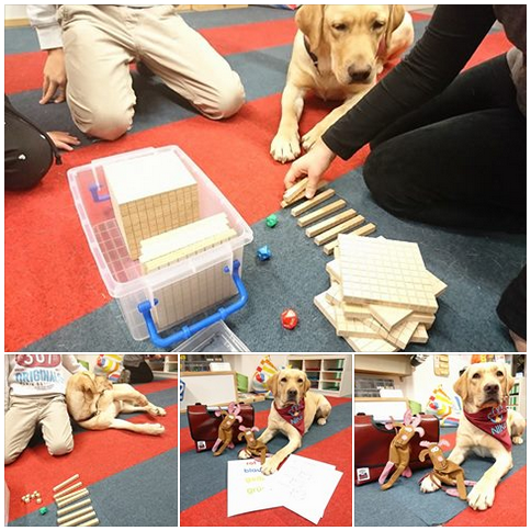 So erhält sie drei Leckerlis und die Kinder eine Zahl bis 1000 (durch Stellenwertwürfel)...