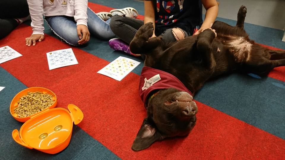 Sie durfte heute gemeinsam mit einer Viertklassgruppe starten und auch sie freute sich riesig, mal wieder Kinder um sich zu haben und bot ihnen direkt mal den Hundekumpel zum Knuddeln an.