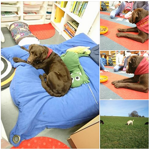 Aber die anderen Kinder lässt sie natürlich auch nicht außer Acht: bei den eher unruhigeren, ungeduldigeren setzt sie sich in einigem Abstand ab und beobachtet diese aus einer geringen Entfernung. Die Kinder werden somit nicht so leicht abgelenkt, haben aber dennoch das Gefühl, dass "ihr" Schulhund ganz genau schaut und beobachtet, was sie denn so treiben ![]()